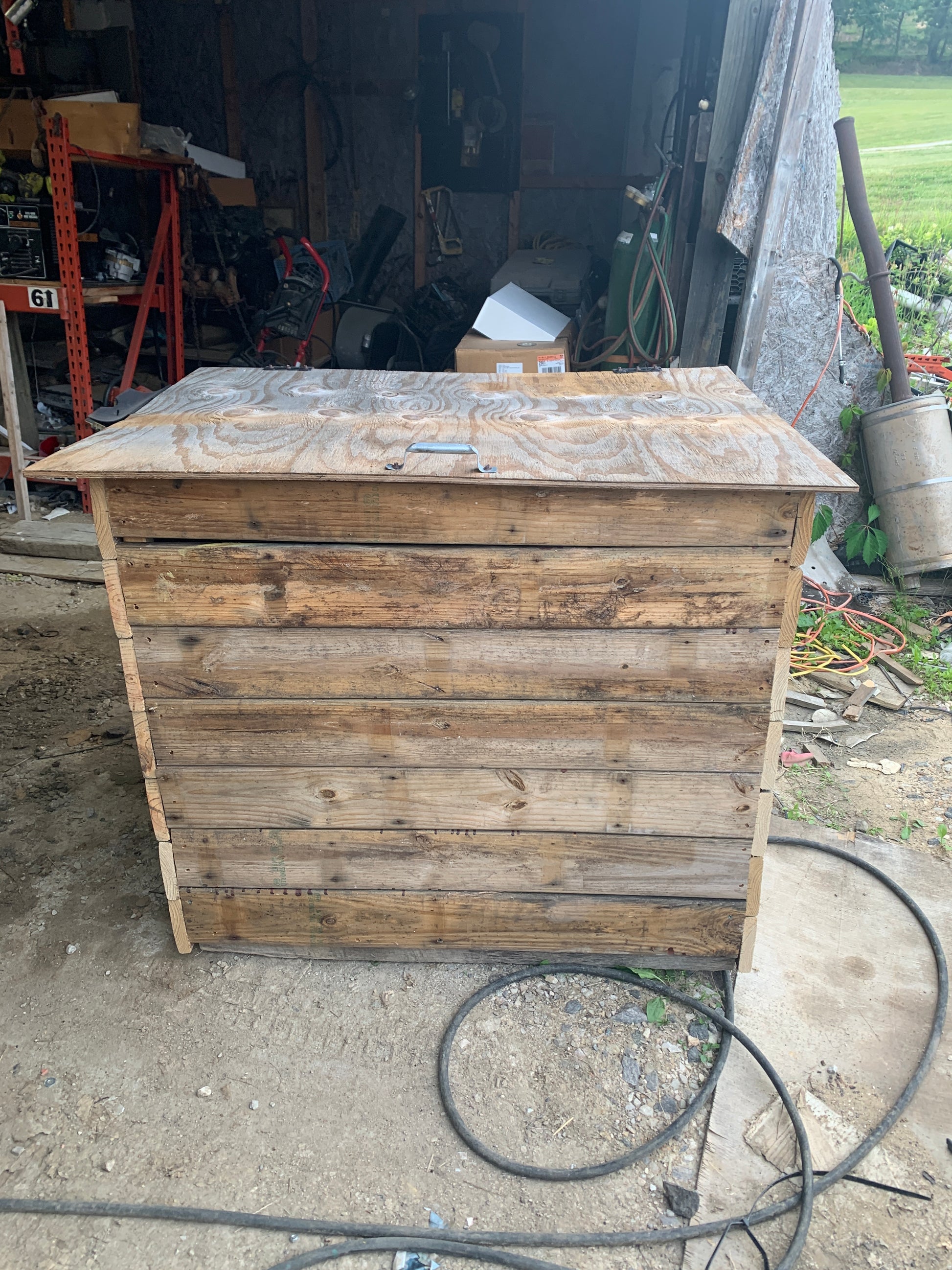 Trash bin is 4 feet deep. 4 feet long and 3 feet wide.